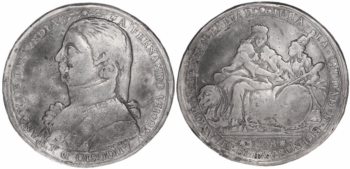 Buenos Aires, Argentina, silver proclamation medal, Ferdinand VII, 1808.