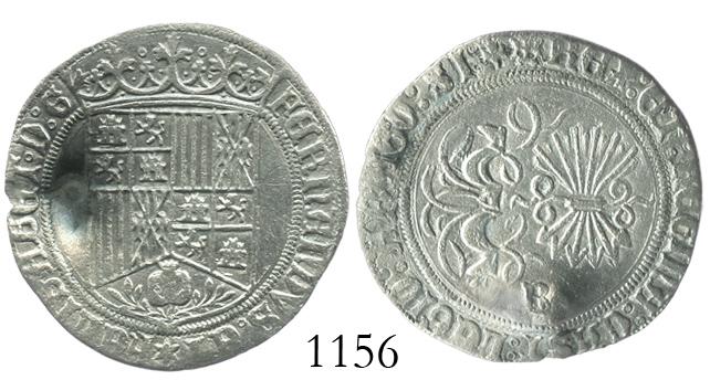 Burgos, Spain, 1 real, Ferdinand-Isabel, with P countermark (for Panama[?]), rare.