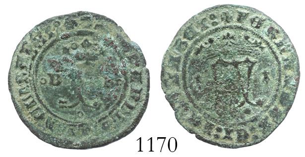Burgos, Spain (for the New World), copper 2 maravedis, Ferdinand-Isabel, rare. 3.2 grams. Rare special coinage struck for New World use only, with crowned Y and F flanked by ermines on obverse, crowned F flanked by mintmark B and small circles on reverse, broad flan with full legends and clear inner details, patinated and lightly encrusted VF.
