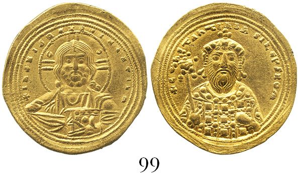 Byzantine Empire, AV histamenon nomisma, Constantine VIII, 1025-28 AD, Constantinople mint. Sb-1815. 4.3 grams. Constantinople mint. Facing bust of Christ Pantokrator / Crowned facing bust of Constantine, holding labarum and akakia. Choice XF, broad flan, well detailed.