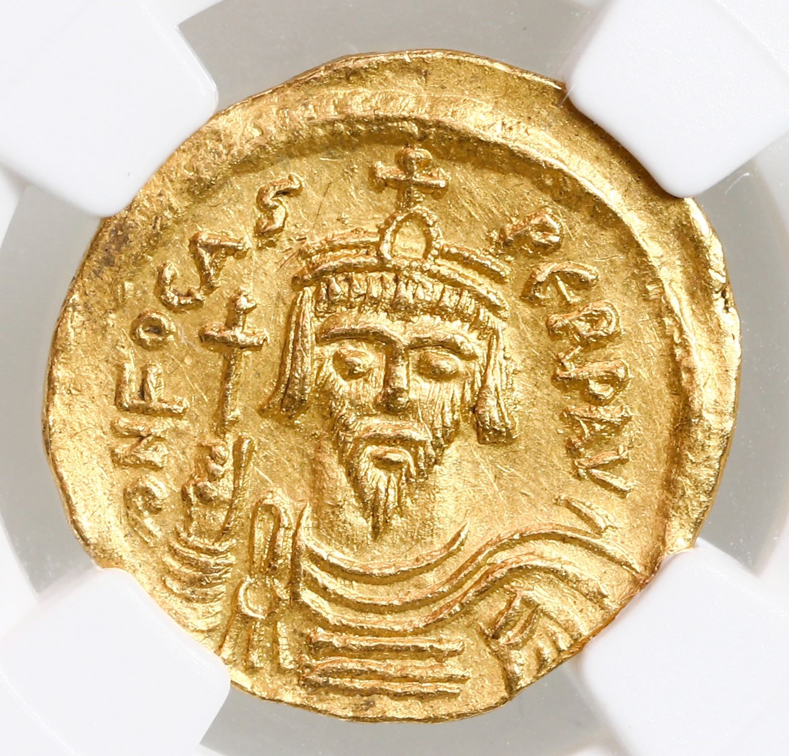 Byzantine Empire, AV solidus, Phocas, 602-610 AD, Constantinople mint, NGC Ch AU, strike 5/5, surfac