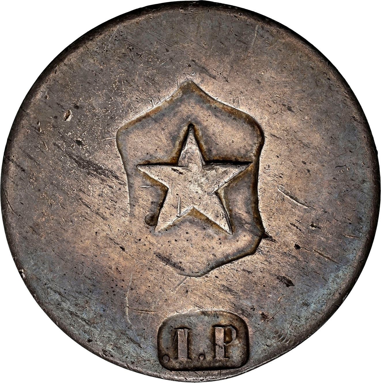 CHILE, Copiapó, 1 peso, (1859), inverted shield with proper star, Arabic 1, NGC AU 55. KM-2.2. A Spartan uniface design struck during occupation of Copiapó in 1859 by Chilean revolutionary Pedro León Gallo Goyenechea, this example with fairly deep stamps harboring moderate luster, a few small marks, choice blue toning toward edge.