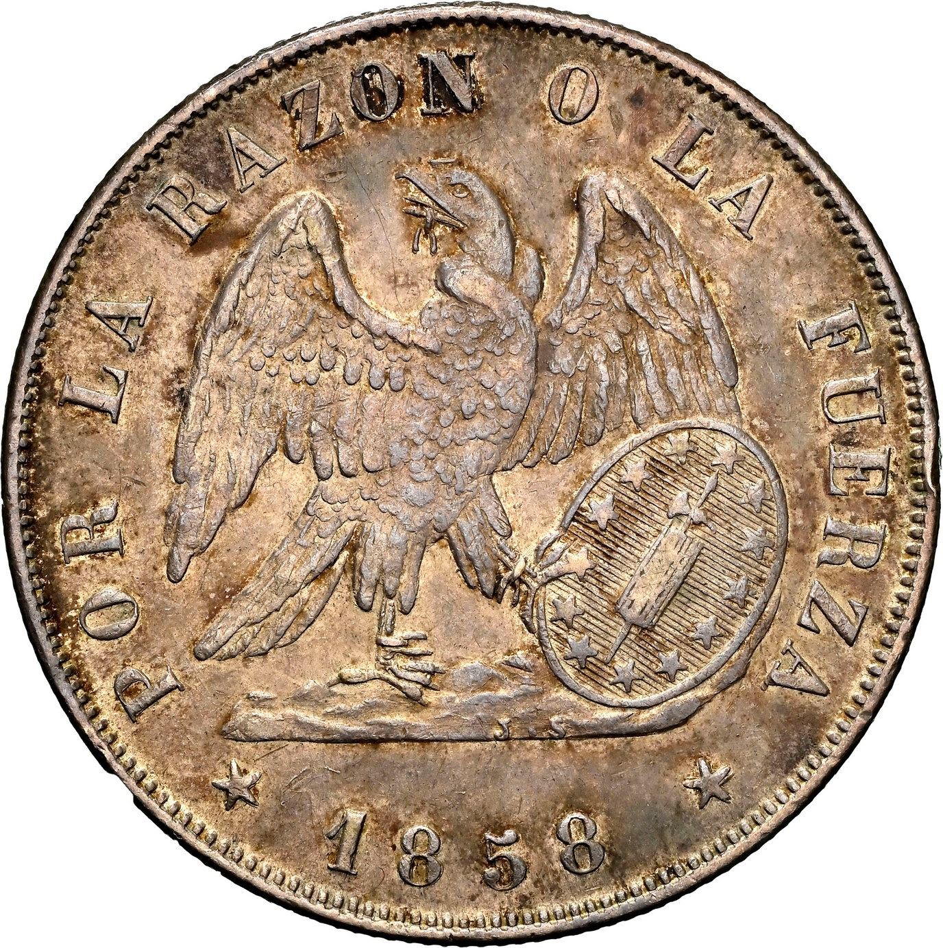 CHILE, Santiago, 1 peso, 1858, NGC AU 55.
