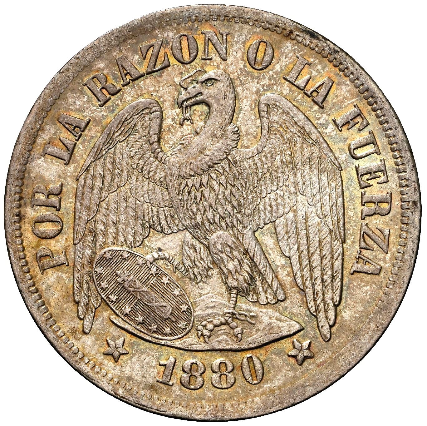 CHILE, Santiago, 1 peso, 1880, NGC MS 64, "top pop" in the NGC census.