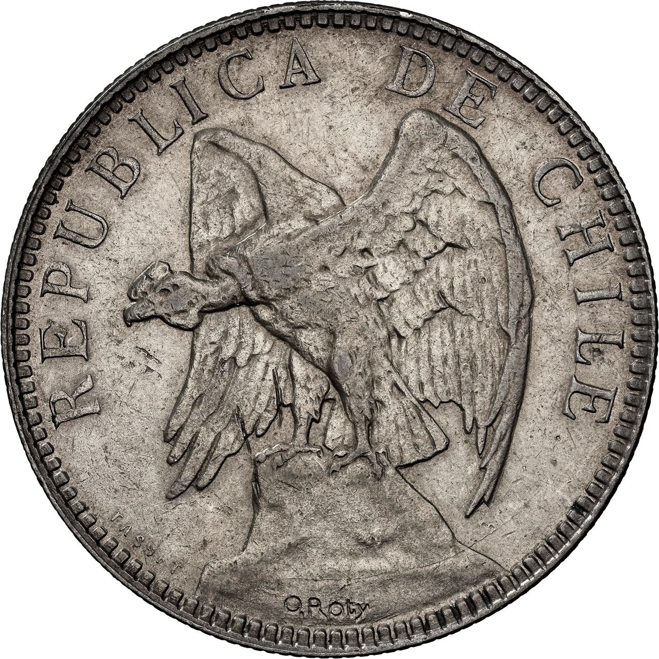 NOTE: We feature here a complete set of Chilean pesos of the design known as “Hoz y Martillo” (Sickle and Hammer) from 1895 to 1933, beginning with a very rare pattern for the year 1894. This design is distinct from the previous “Condor Pesos,” which ran from 1867 until 1891. This selection of “Hoz y Martillo” pesos in the highest possible grades presents a great opportunity for collectors to improve their collections or add missing dates.
