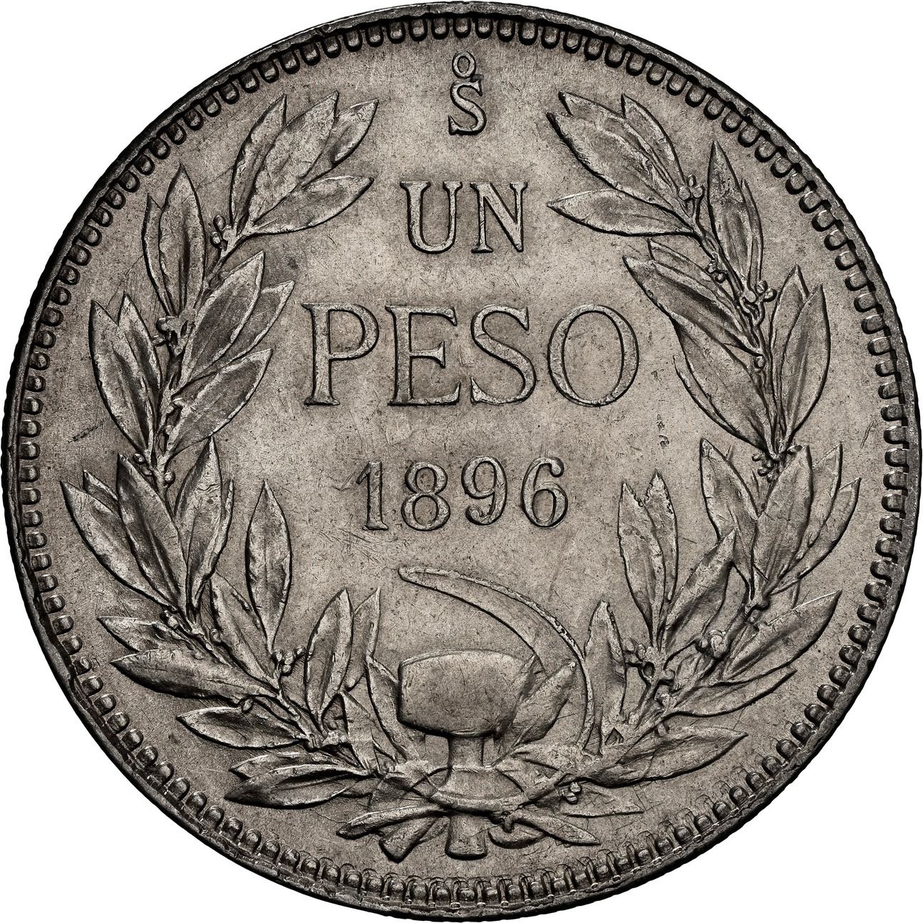 CHILE, Santiago, 1 peso, 1896, NGC AU 53 (Colección Val y Mexía Label).