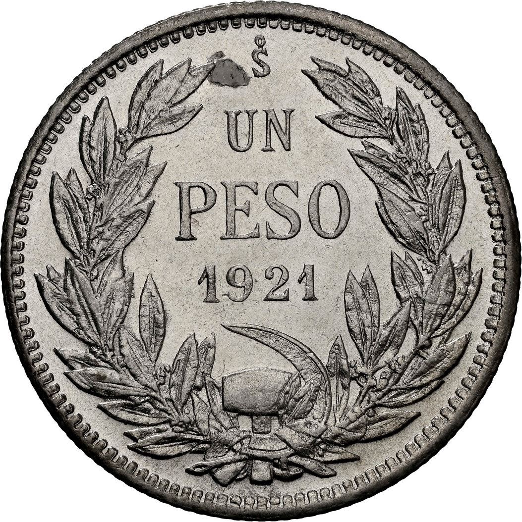 CHILE, Santiago, 1 peso, 1921, NGC MS 65 (Colección Val y Mexía Label), "top pop."