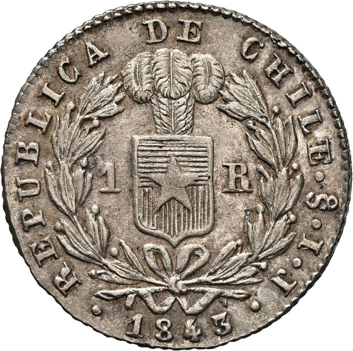 CHILE, Santiago, 1 real, 1843 IJ, NGC MS 62 (Colección Val y Mexía Label).