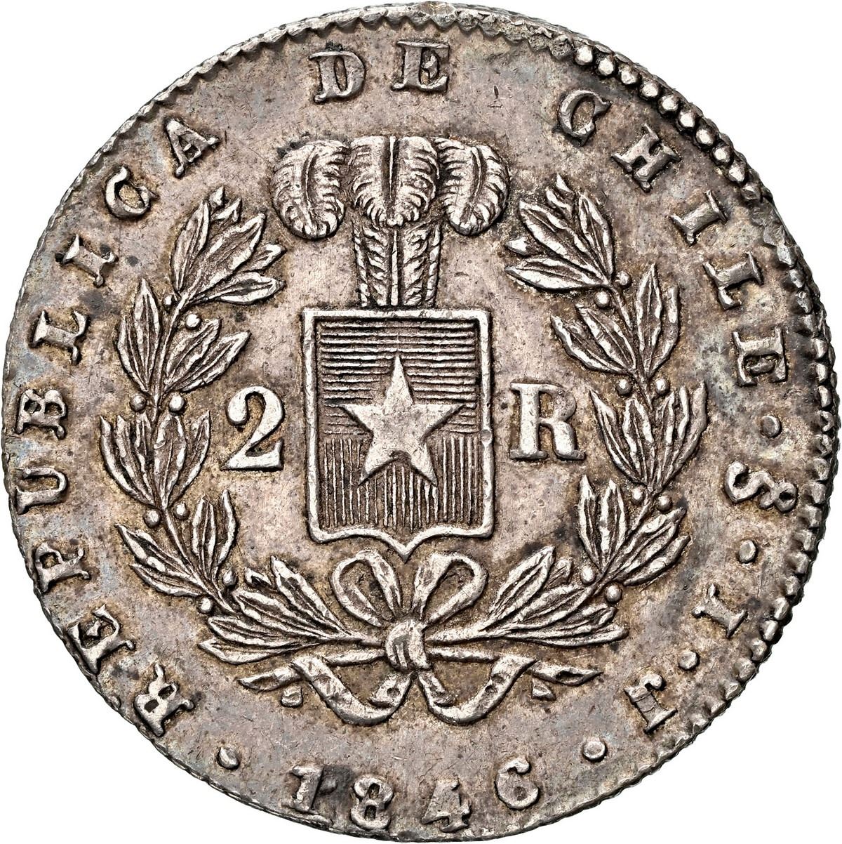 CHILE, Santiago, 2 reales, 1846 IJ, NGC AU 53 (Colección Val y Mexía Label).