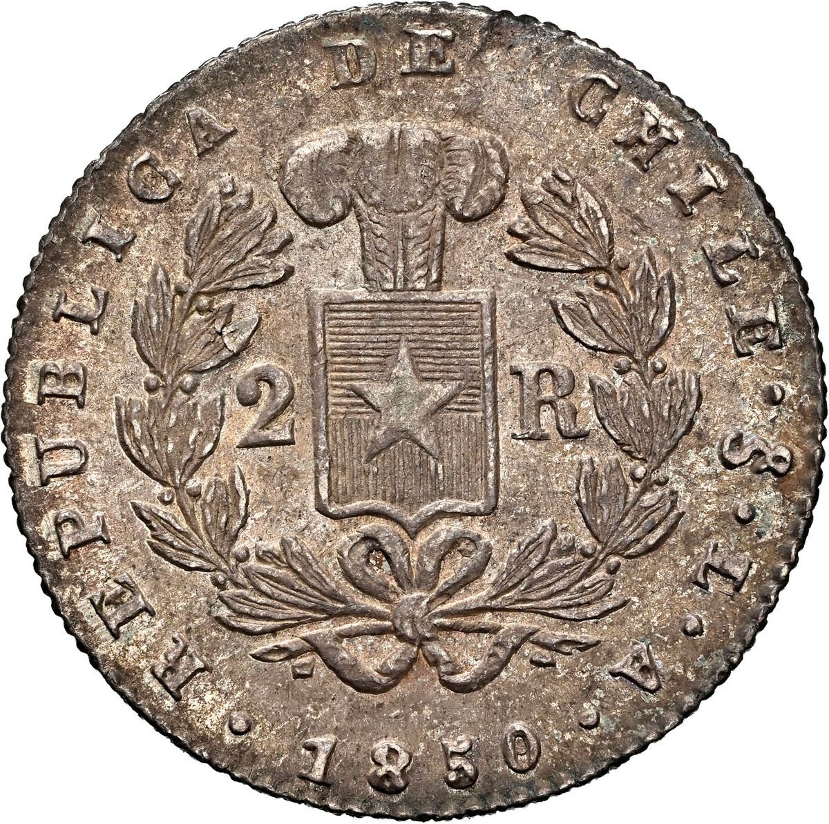 CHILE, Santiago, 2 reales, 1850/9 LA, rare, NGC AU 55 (Colección Val y Mexía Label), finest known in