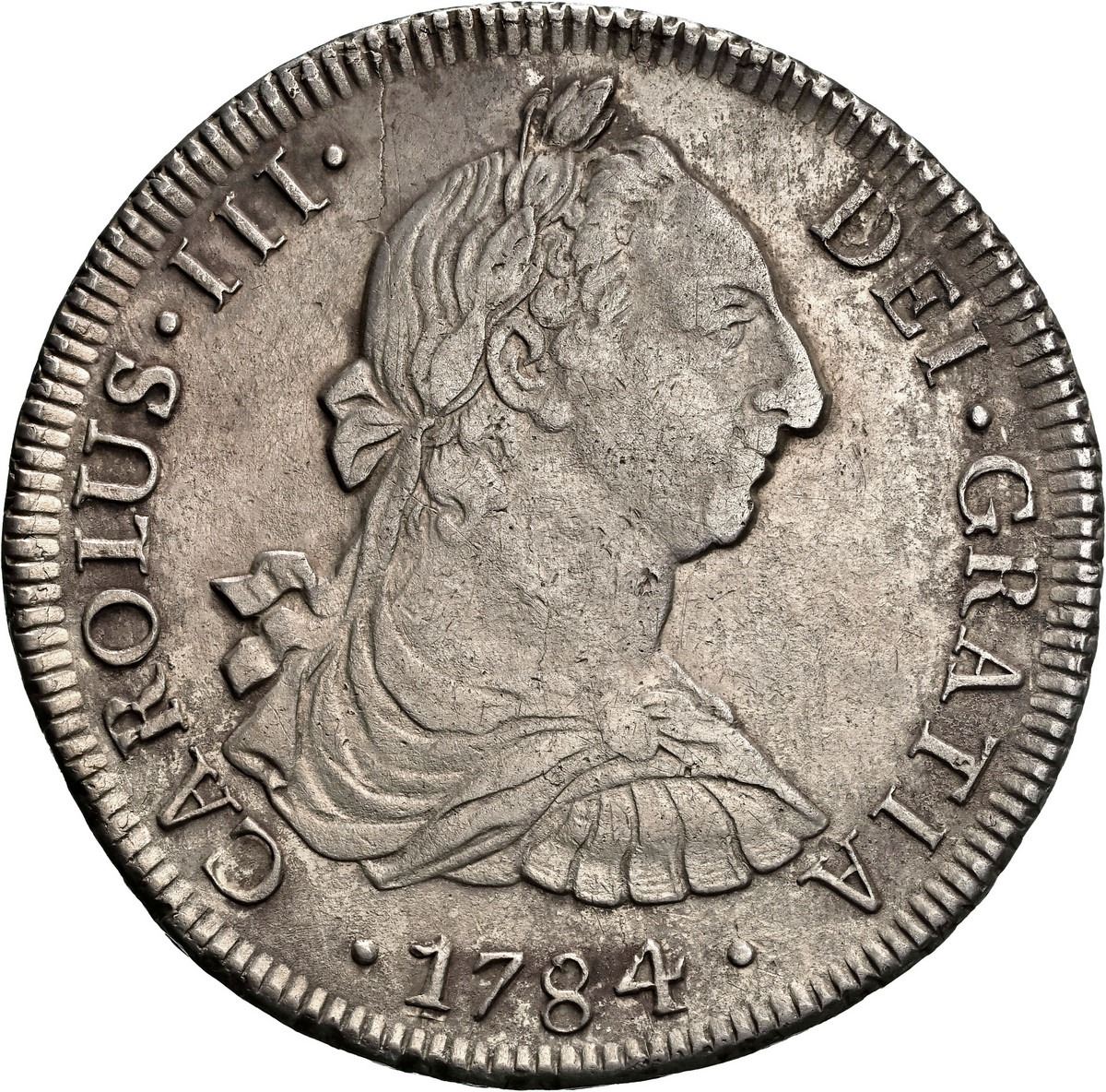 CHILE, Santiago, bust 8 reales, Charles III, 1784 DA, large over small mintmark, very rare, NGC XF d