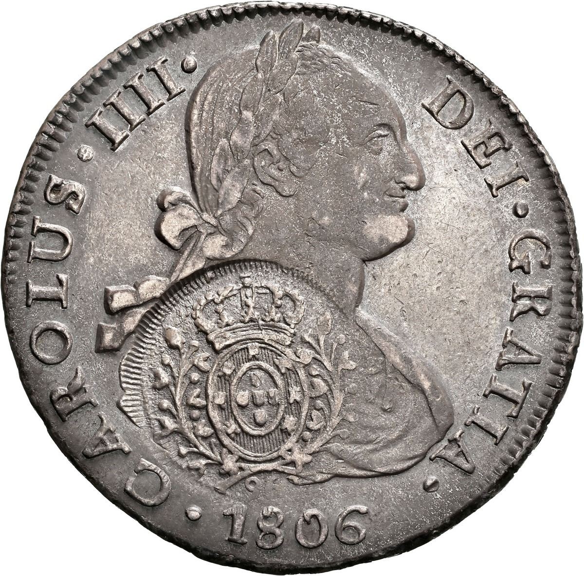 CHILE, Santiago, bust 8 reales, Charles IV, 1806 FJ, with Minas Gerais (Brazil) 960 reis counterstam