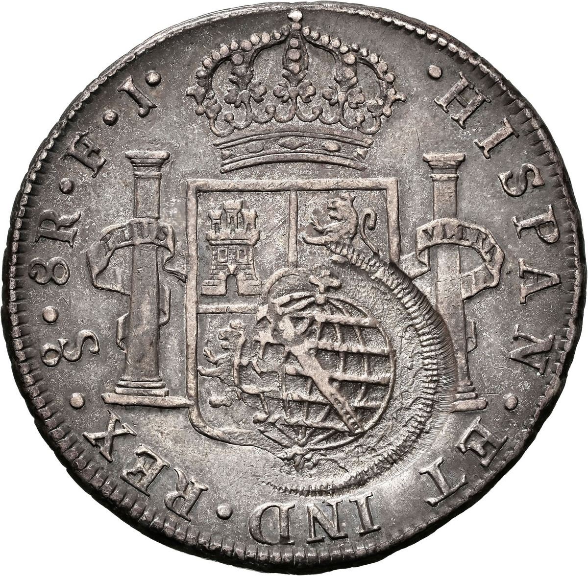CHILE, Santiago, bust 8 reales, Charles IV, 1806 FJ, with Minas Gerais (Brazil) 960 reis counterstamp (1808), NGC XF 45, c/s AU standard (Colección Val y Mexía Label). Gomes-115.04; KM-243; host: Cal-1047; KM-51. Dark gray toning all over, the nearly full counterstamp sharply detailed but struck from rusty dies, scarce on this host, especially with date visible. Pedigreed to the Val y Mexía Collection.