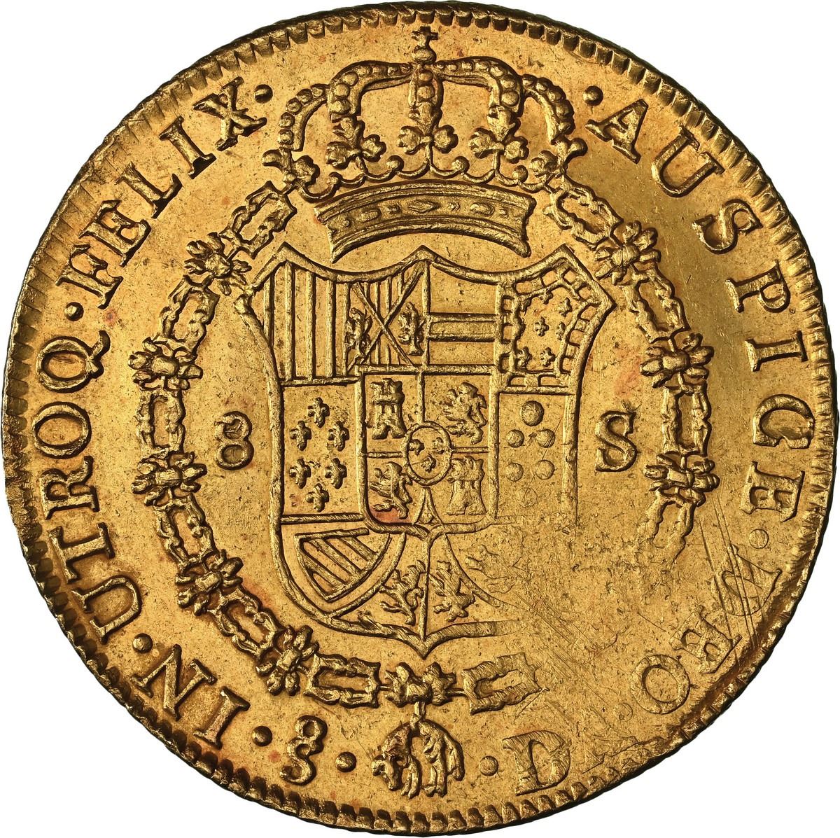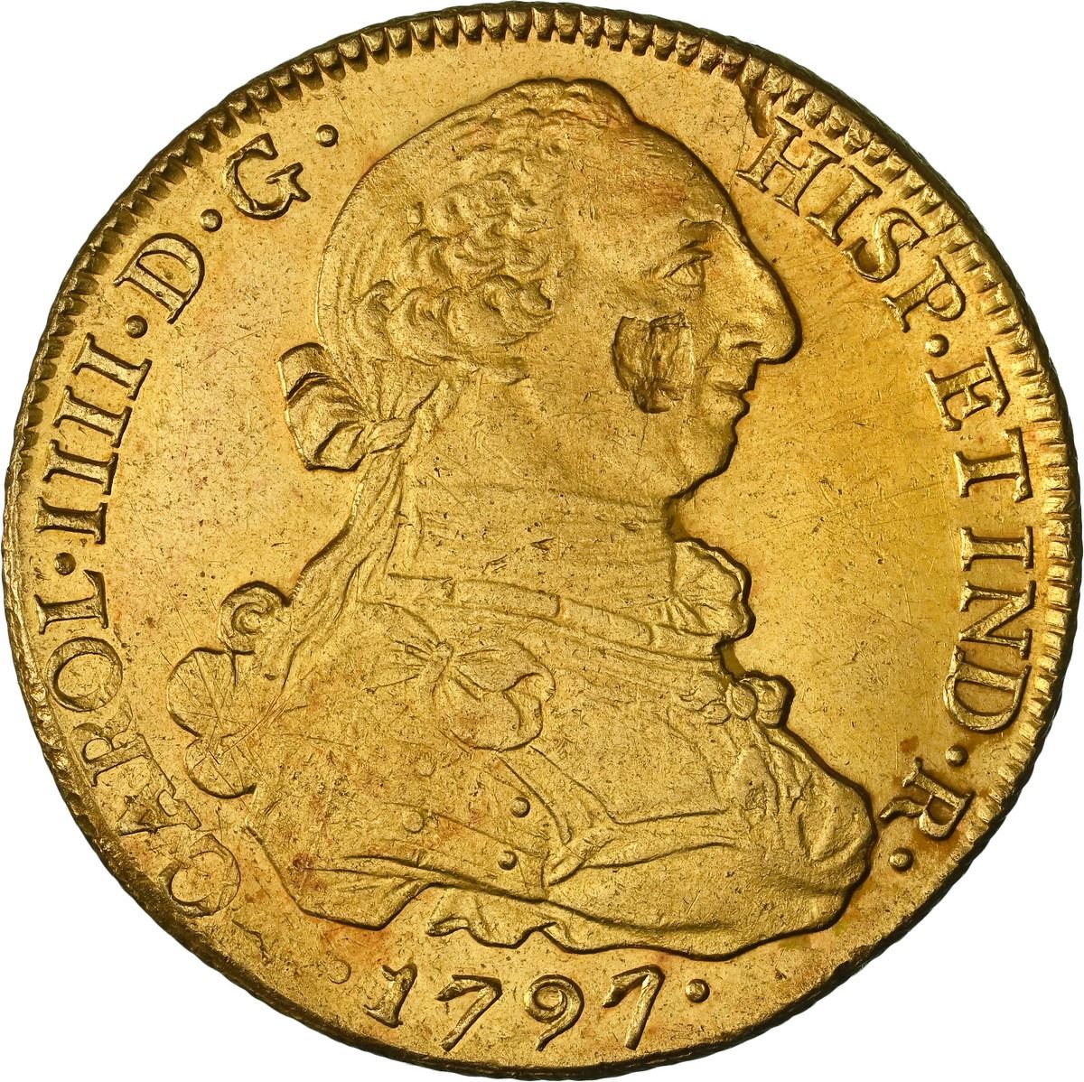 CHILE, Santiago, gold bust 8 escudos, Charles IV (bust of Charles III), 1797 DA, rare provenance, NG
