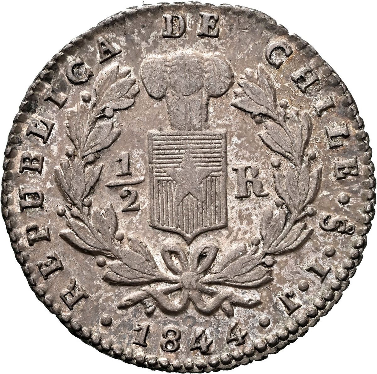 CHILE, Santiago, ½ real, 1844 IJ, NGC MS 65 (Colección Val y Mexía Label).