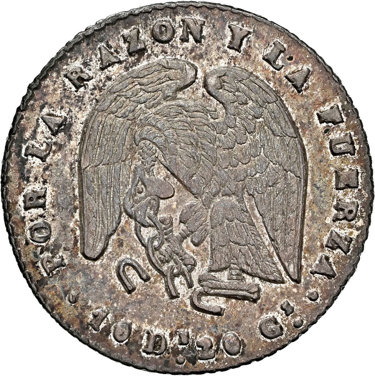 CHILE, Santiago, ½ real, 1847 IJ, NGC AU 58 (Colección Val y Mexía Label). KM-98.2. Blotchy rainbow toning around small areas of bright luster, somewhat scarce. Pedigreed to the Val y Mexía Collection.
