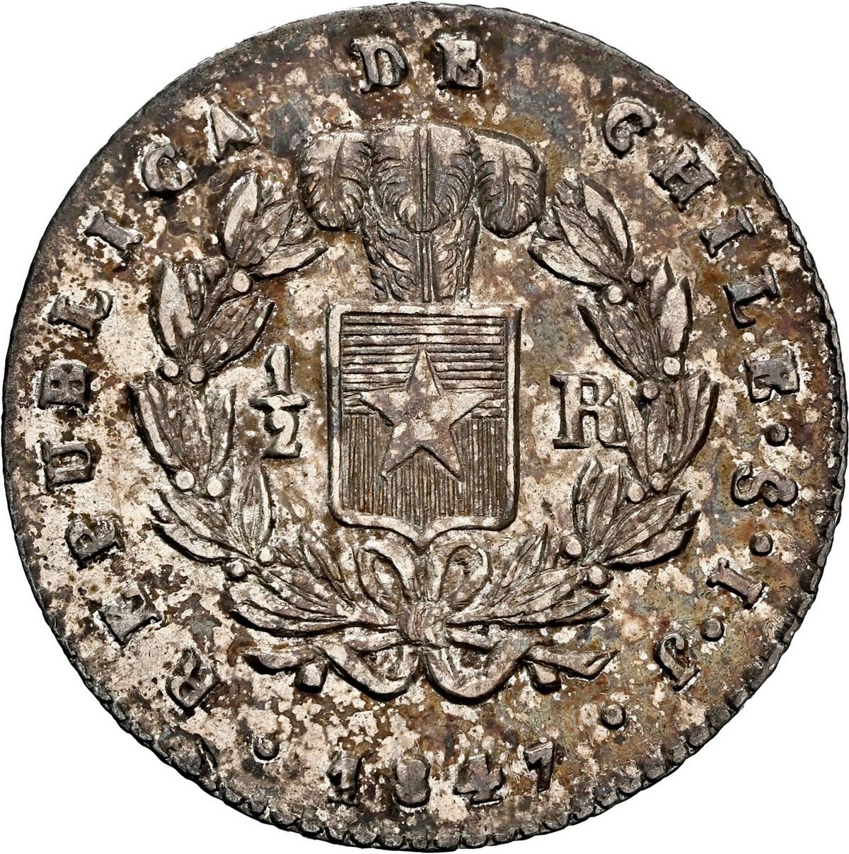 CHILE, Santiago, ½ real, 1847 IJ, NGC AU 58 (Colección Val y Mexía Label).