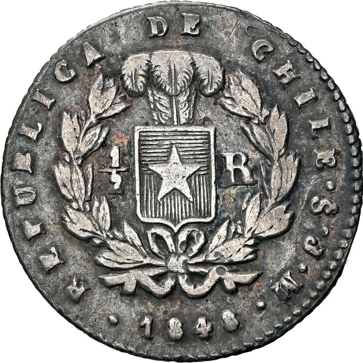CHILE, Santiago, ½ real, 1848 JM, rare, NGC VF 35 (Colección Val y Mexía Label).