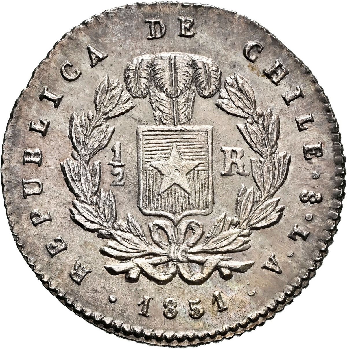 CHILE, Santiago, ½ real, 1851 LA, NGC MS 65 (Colección Val y Mexía Label), finest known in NGC censu