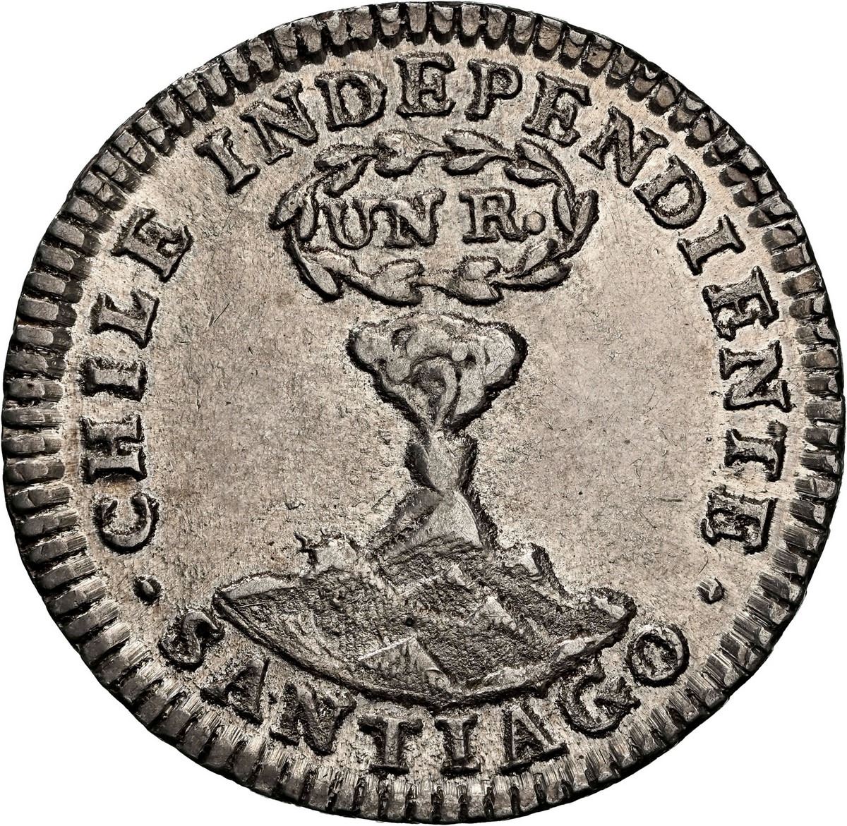 CHILE, Santiago, "volcano" 1 real, 1834 IJ, NGC AU 58 (Colección Val y Mexía Label).