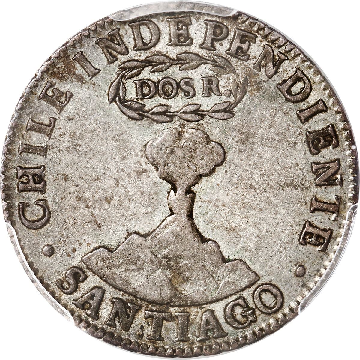 CHILE, Santiago, "volcano" 2 reales, 1834 IJ, PCGS XF40, ex-Val y Mexía. KM-92. Attractive gray toning over muted luster, scarce and popular issue (only 3,740 minted). Pedigreed to the Val y Mexía Collection.