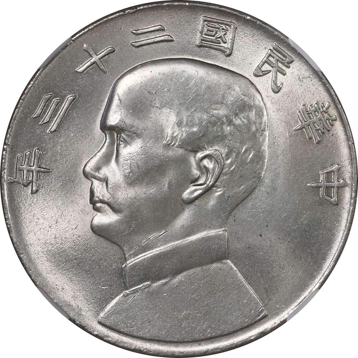 CHINA, Republic, "junk" dollar, Sun Yat-sen, Year 23 (1934), NGC MS 62.
