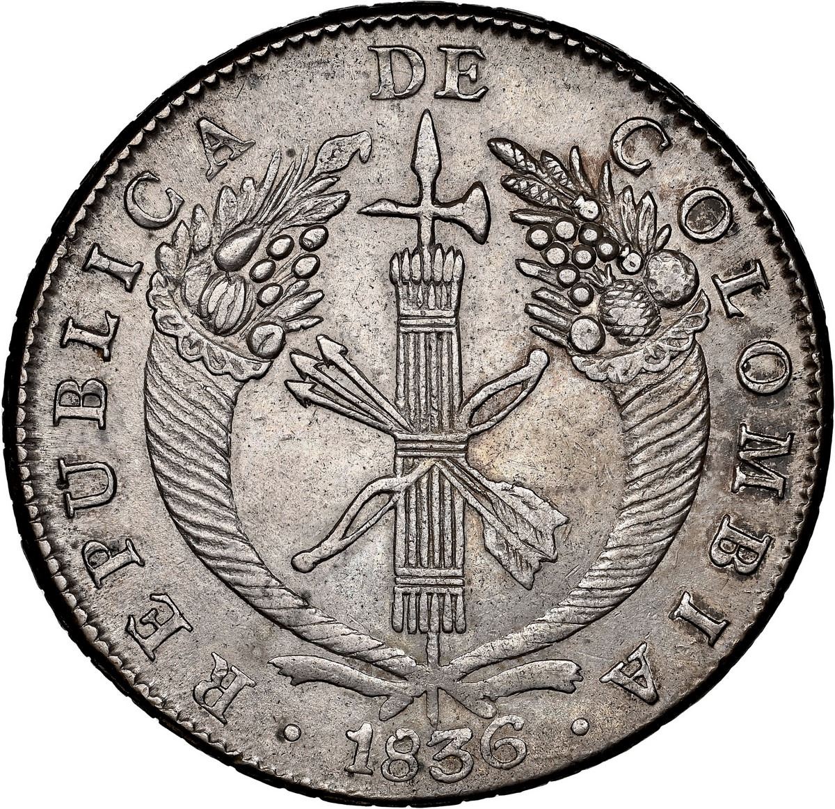 COLOMBIA, Bogotá, 8 reales, 1836 RS, NGC AU 58, ex-Toulemonde, ex-Medina.