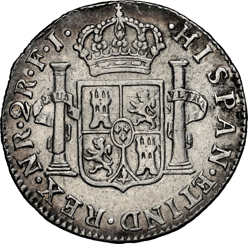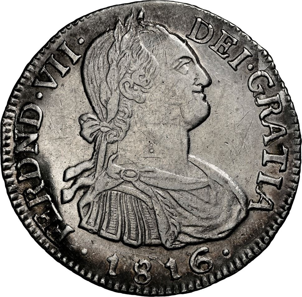 COLOMBIA, Bogotá, bust 2 reales, Ferdinand VII (bust of Charles IV), 1816 F•J/J•J,
