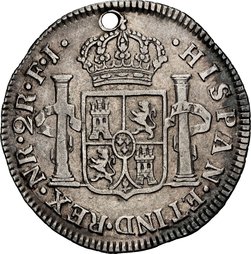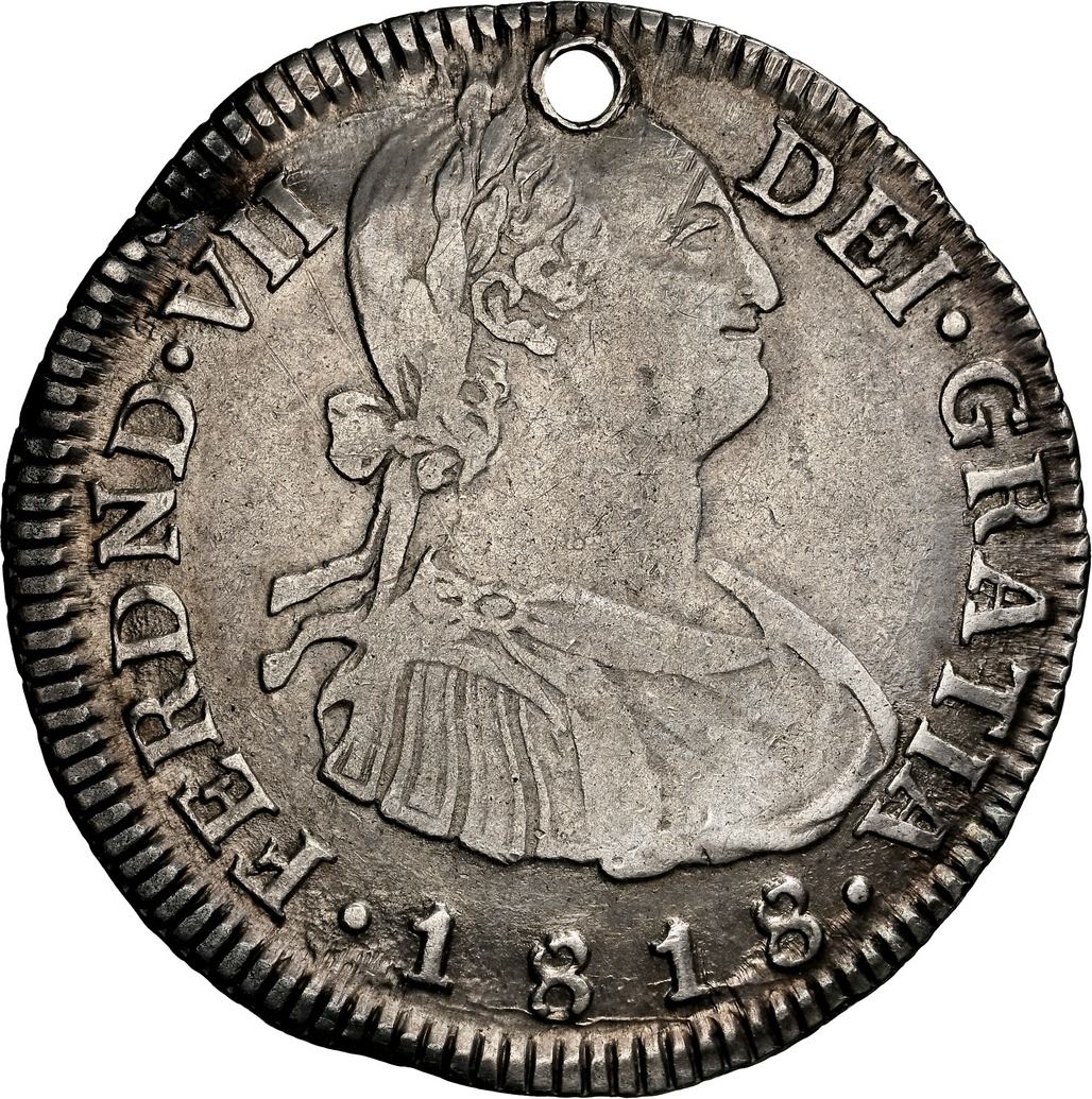 COLOMBIA, Bogotá, bust 2 reales, Ferdinand VII (bust of Charles IV), 1818 FJ, NGC VF details / holed