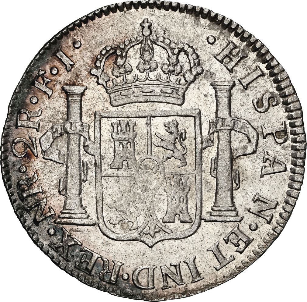 COLOMBIA, Bogotá, bust 2 reales, Ferdinand VII (bust of Charles IV), 1819 F•J, wide-date va