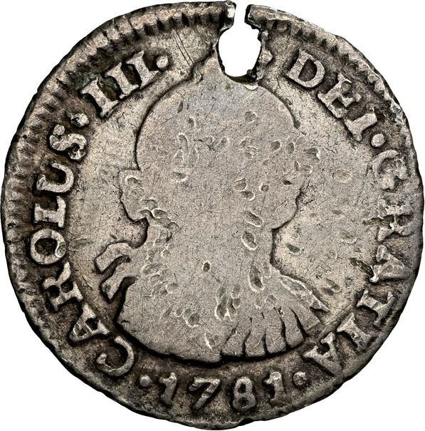 COLOMBIA, Bogotá, bust ½ real, Charles III, 1781 JJ, very rare, NGC G details / holed, ex-Becerra.
