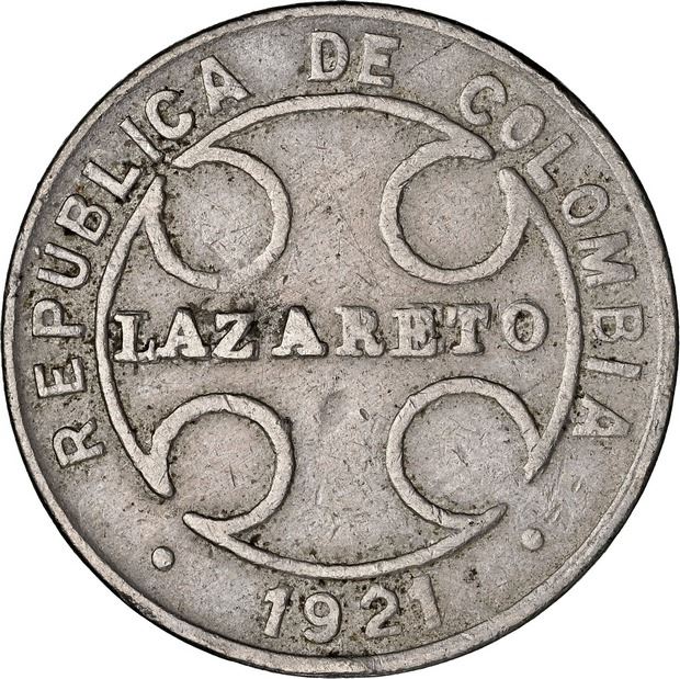 COLOMBIA, Bogotá, copper-nickel 1 centavo, 1921-RH, Lazareto, NGC AU details / cleaned, finest and only example in NGC census, Restrepo Plate (stated on label). Lightly toned over muted luster, small marks and faint hairlines, unique grade, the lowest denomination of the finest denomination set in existence along with the previous four lots. Plate Coin on page 211 of Restrepo's Coins of Colombia (4th edition, 2012).