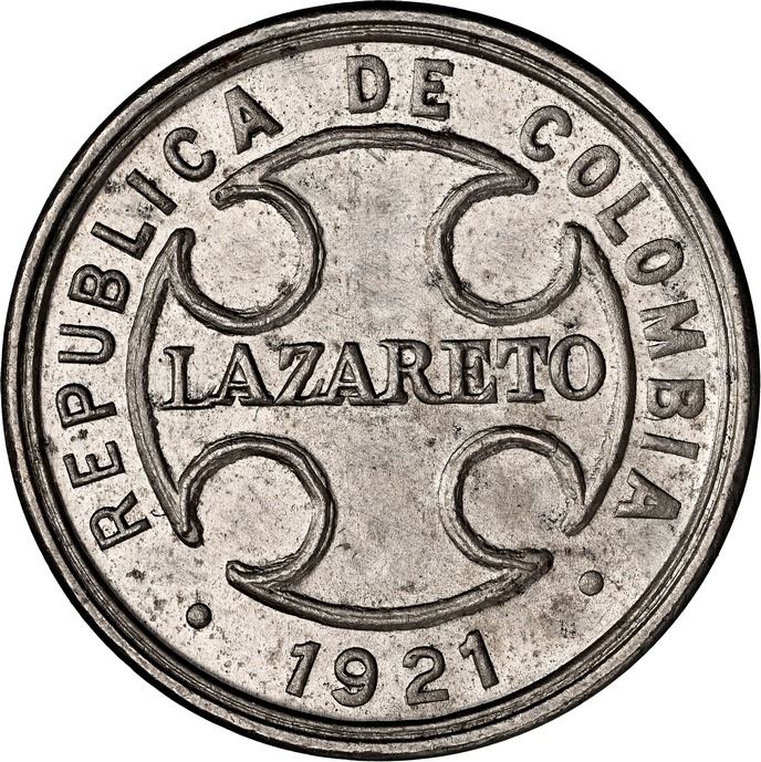 COLOMBIA, Bogotá, copper-nickel 2 centavos, 1921-RH, Lazareto, NGC UNC details / spot removals.