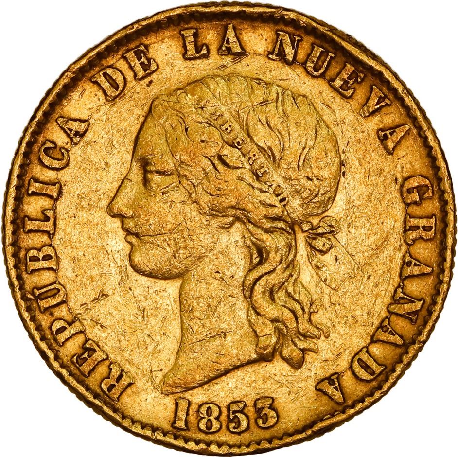 COLOMBIA, Bogotá, gold (10 pesos), 1853, rare, ex-JEAS.