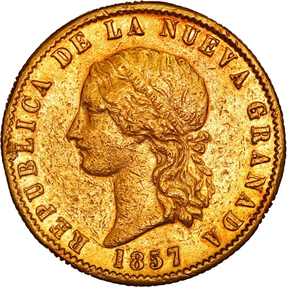 COLOMBIA, Bogotá, gold 10 pesos, 1857, ex-JEAS.