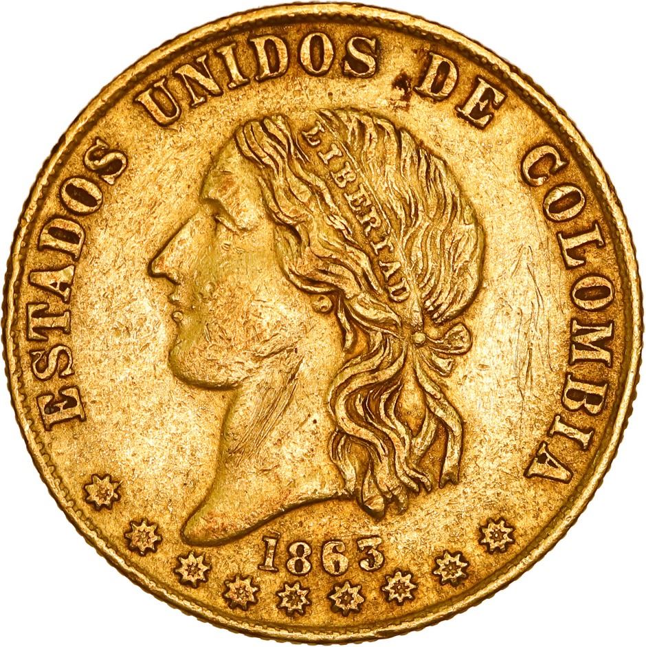 COLOMBIA, Bogotá, gold 10 pesos, 1863, large head, ex-JEAS.