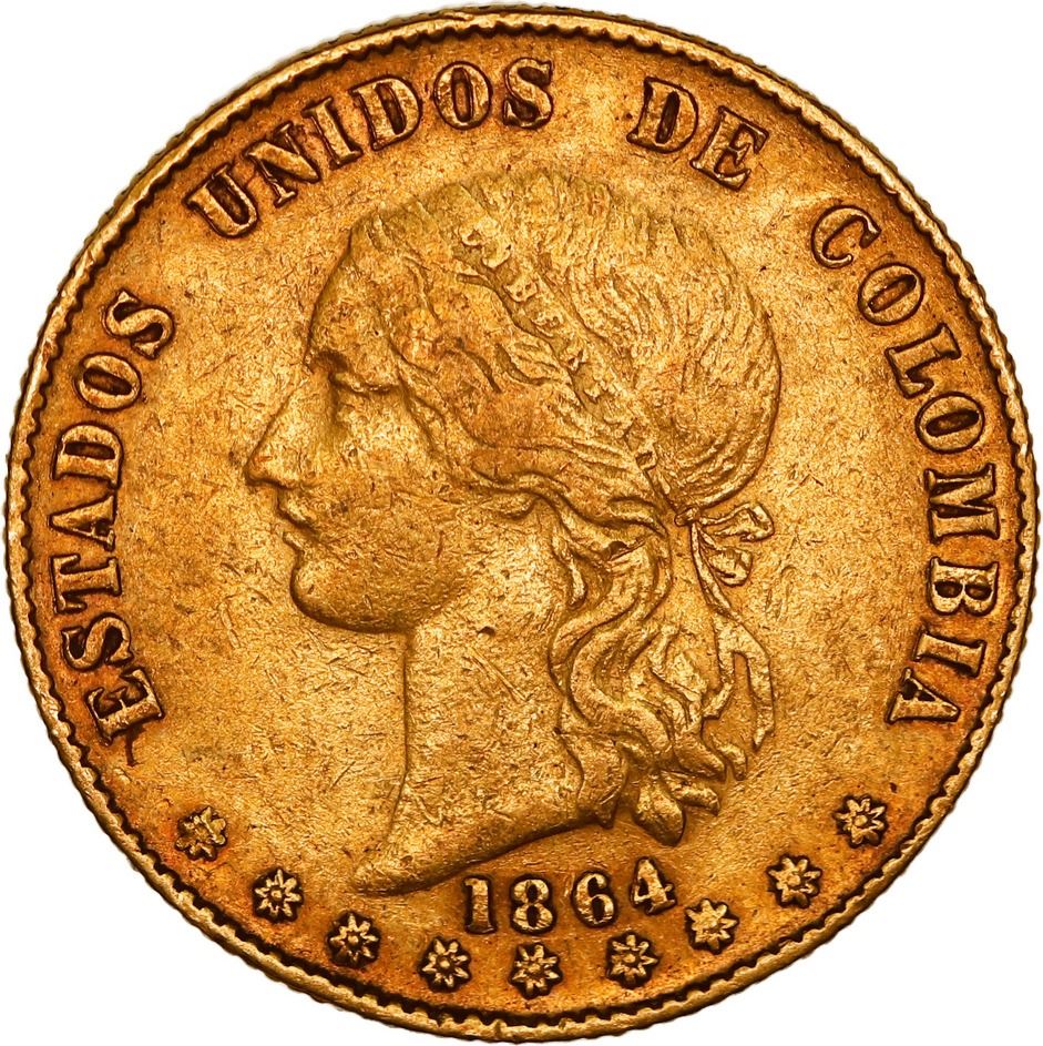 COLOMBIA, Bogotá, gold 10 pesos, 1864, ex-JEAS.