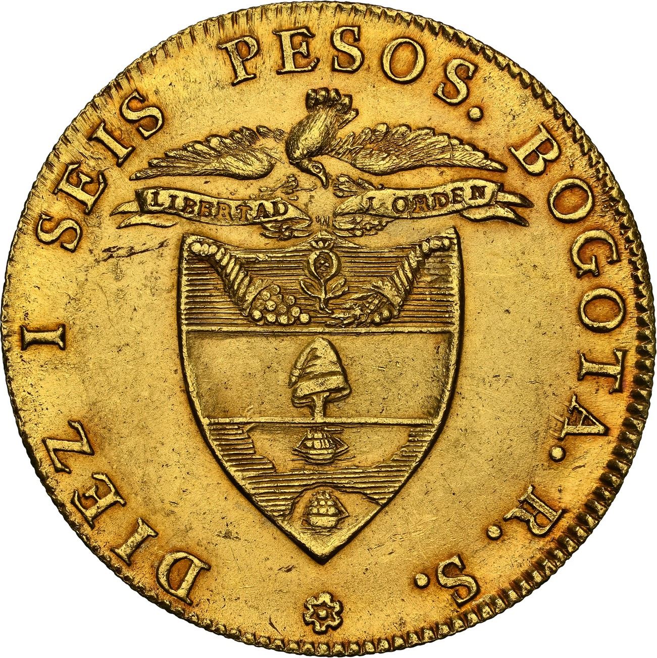 COLOMBIA, Bogotá, gold 16 pesos, 1837 RS, NGC MS 63, finest known in NGC census, ex-JEAS.