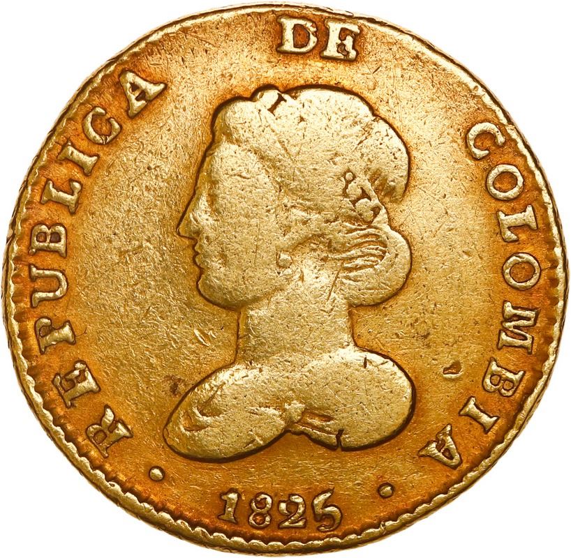 COLOMBIA, Bogotá, gold 2 escudos, 1825 JF, ex-JEAS.