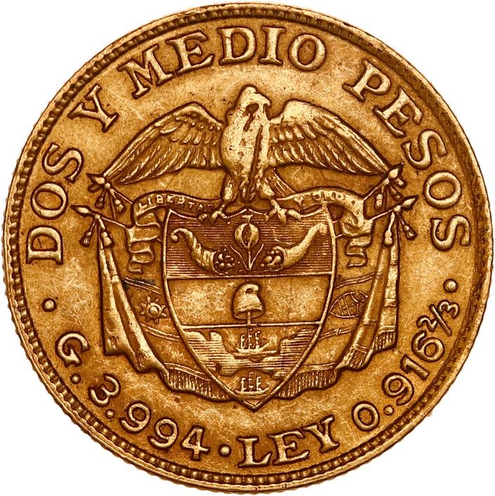 COLOMBIA, Bogotá, gold 2½ pesos, 1919, no mintmark, ex-JEAS.