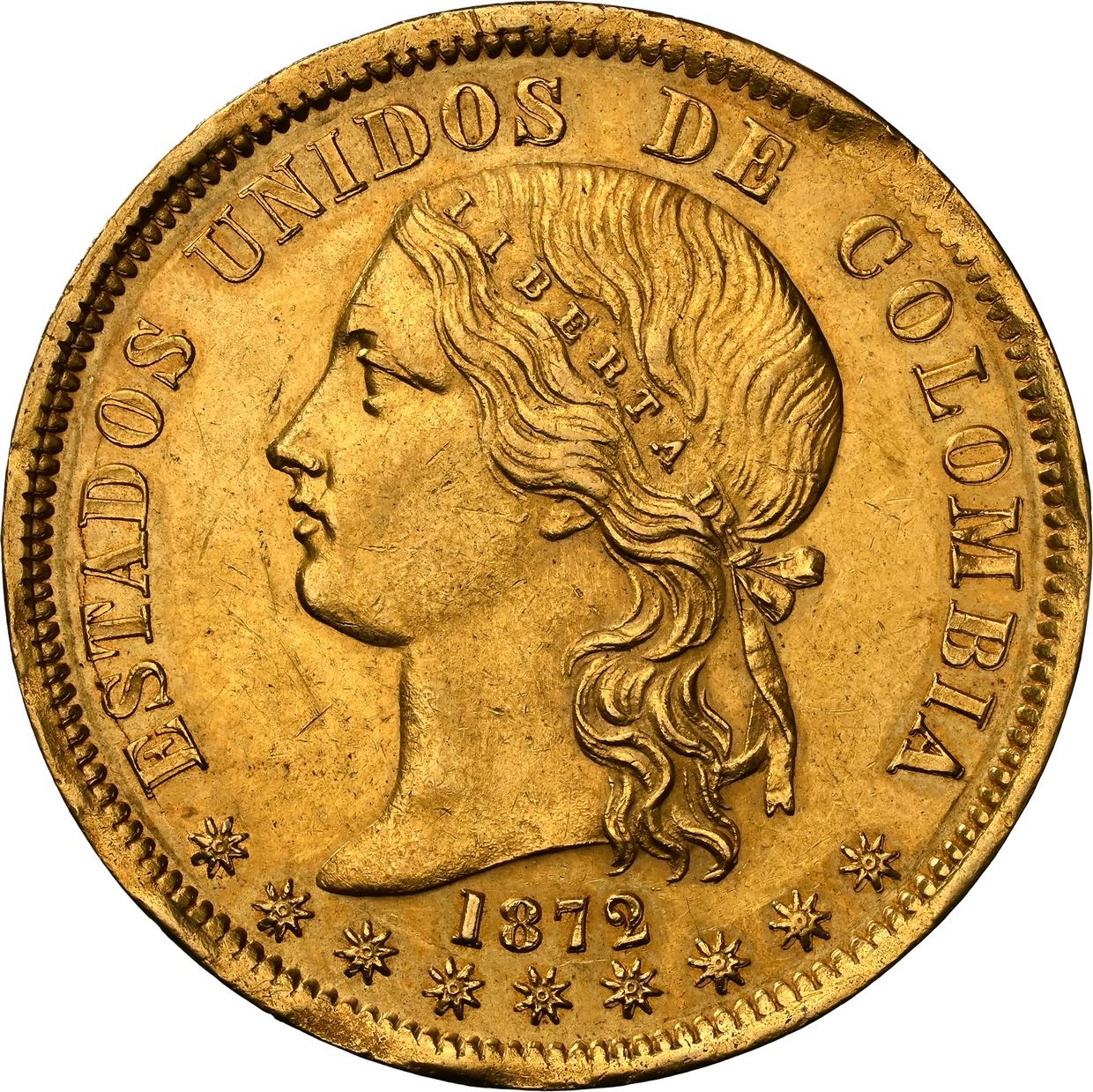 COLOMBIA, Bogotá, gold 20 pesos, 1872, NGC MS 62, ex-JEAS.
