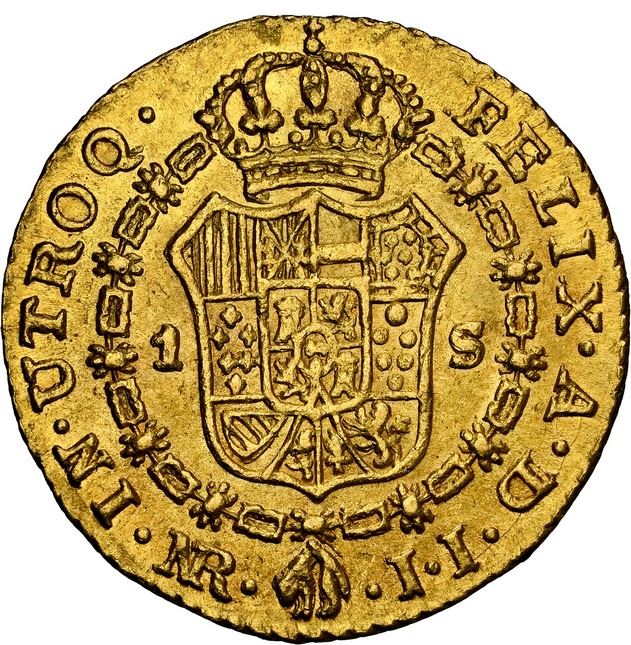 COLOMBIA, Bogotá, gold bust 1 escudo, Charles IV, 1798 JJ, NGC MS 62, finest known in NGC census, ex