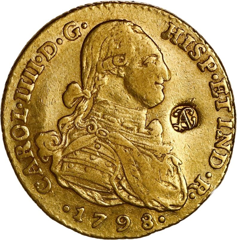 COLOMBIA, Bogotá, gold bust 2 escudos, Charles IV, 1798 J•J, with private countermark "LAC"