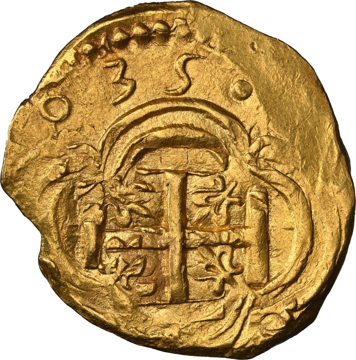 COLOMBIA, Bogotá, gold cob 2 escudos, 1635, assayer A below mintmark NR to left, NGC MS 62 / Mesuno
