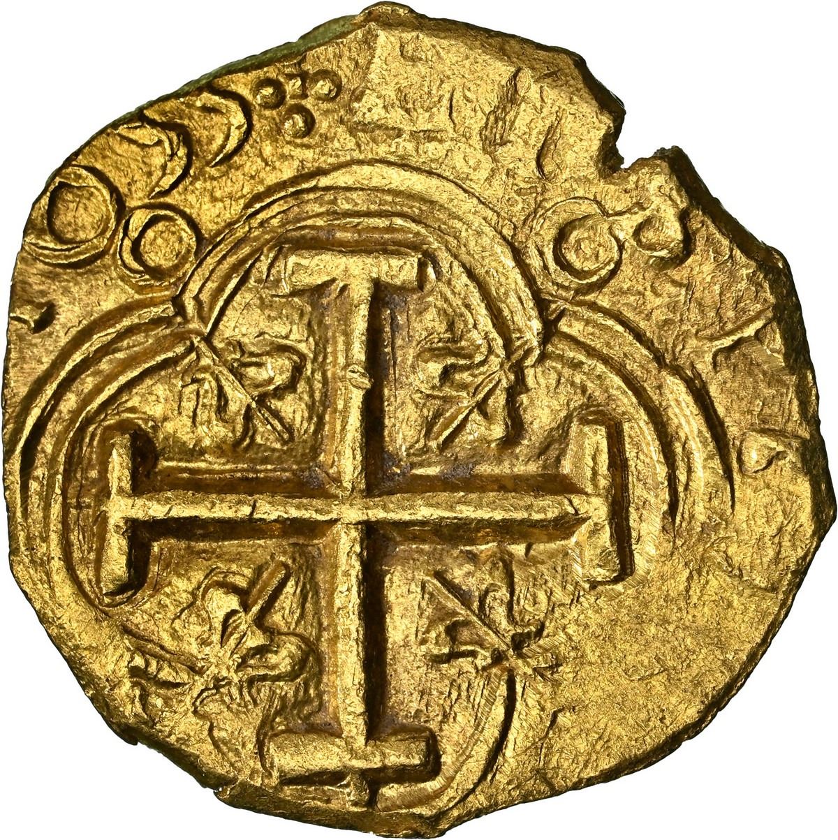 COLOMBIA, Bogotá, gold cob 2 escudos, 1655, assayer R below denomination II to left, mintmark NR to