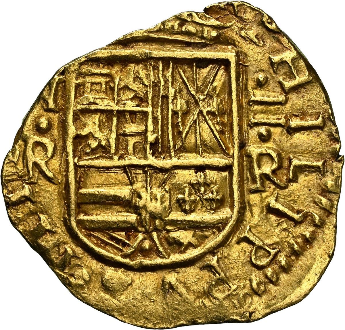 COLOMBIA, Bogotá, gold cob 2 escudos, 1660, assayer R below denomination II to right, mintmark NR to left, rare, NGC AU 58, ex-Caballero (stated on label), Tauler Plate. RAMOS-2; Restrepo-M50.25; S-B21; Cal-1816; KM-4.1; Fr-2. 6.68 grams. Very broad flan with terrifically bold full shield between NR to left and II-R to right, plus 100% complete king's name and ordinal PHILIPPVS IIII, the cross also full but rather doubled, yet with clear 1660 date, butter-yellow color with contrasting toning in crevices. Pedigreed to the Caballero de las Yndias Collection (Aureo & Calicó auction of April 2009, lot 126) and Plate Coin 164 on page 235 of Rafael Tauler's Oro Macuquino (2011).