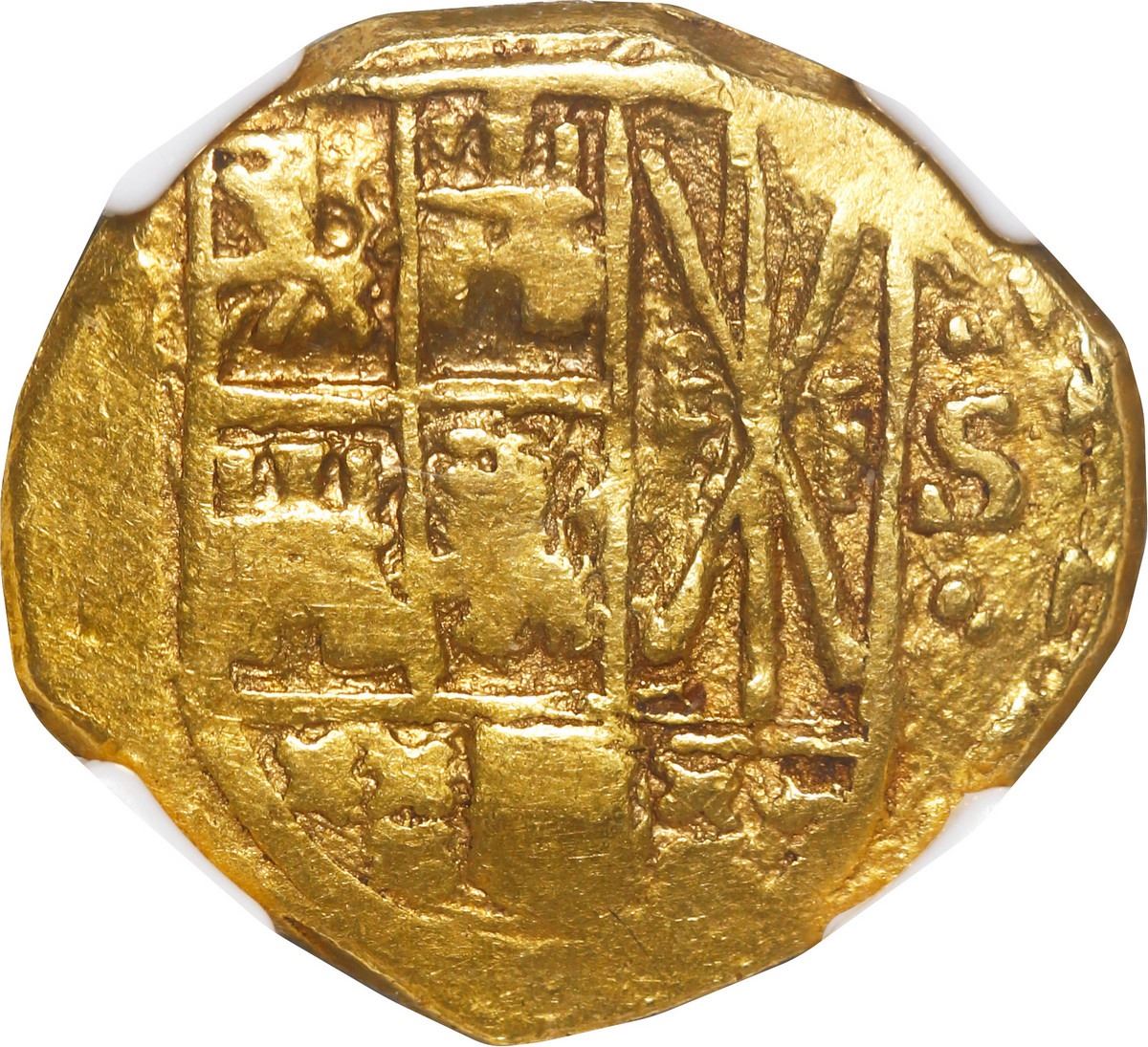 COLOMBIA, Bogotá, gold cob 2 escudos, 1728, assayer S to right, rare, NGC XF 40, finest and only example in NGC census, ex-Lasser, ex-Santa Fe, Tauler Plate. SANC-4; Restrepo-unl (M80.8); S-B25b; Cal-unl (Type 243); KM-unl (17.2 for type); Fr-8a. 6.76 grams. Bold full shield (well centered) with full •S• to right, full cross-and-tressure with hint of doubling, clear 728 date preceded by (RE)X in legend (the norm for this assayer), rich gold color, desirable pedigree, same obverse as for the 1728/7 shown in Restrepo (but clean-date 1728 not listed). Pedigreed to the Lasser Collection and to the Leu Numismatik Auction 80 of May 2001 (lot 905), also to the Santa Fe Collection (Sedwick Auction 10, lot 64) and Plate Coin 289 on page 291 of Rafel Tauler's Oro Macuquino (2011).