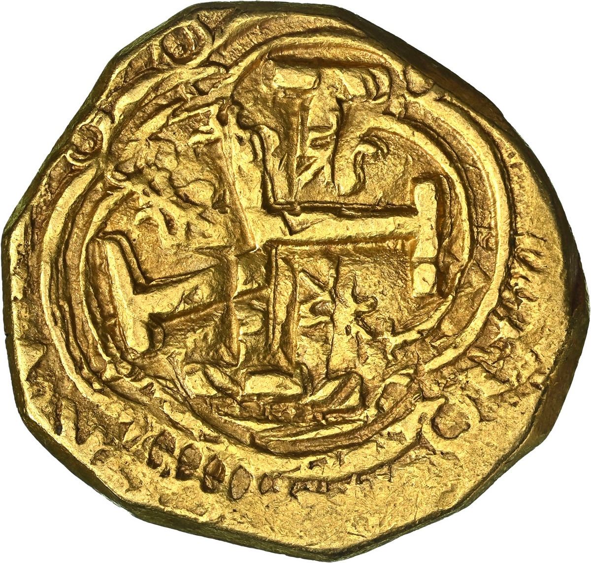 COLOMBIA, Bogotá, gold cob 2 escudos, Philip IV, assayer not visible (R) to left, mintmark NR to right, style of early 1640s, NGC AU 55. RAMOS-1; Restrepo-M50.23; S-B21; KM-4.1; Fr-2. 6.73 grams. Full but rather double-struck shield and cross (the latter with distinctively round tressure per early 1640s), clear mintmark and king's name, light yellow color.