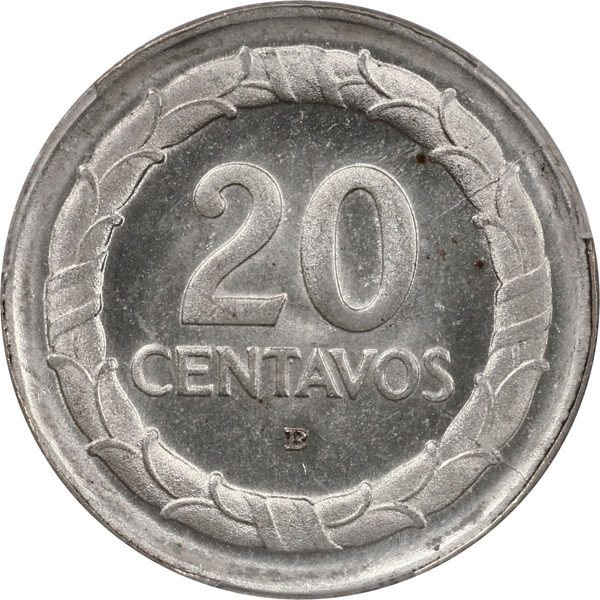 COLOMBIA, Bogotá, proof pattern 20 centavos in .900 silver, 1945-B, rare, PCGS MS65.
