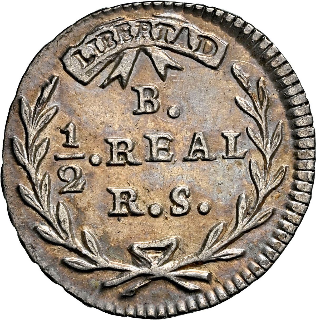COLOMBIA, Bogotá, ½ real, 1833 RS, NGC AU details / cleaned, ex-Dana Roberts. Restrepo-150.1; KM-88.1. Bold strike with sharp details, choice grade but with faint surface hairlines overlain with light rainbow toning, very pretty example of this first date of type. Pedigreed to the Dana Roberts Collection (Heritage auction of April 2011, lot 23654).